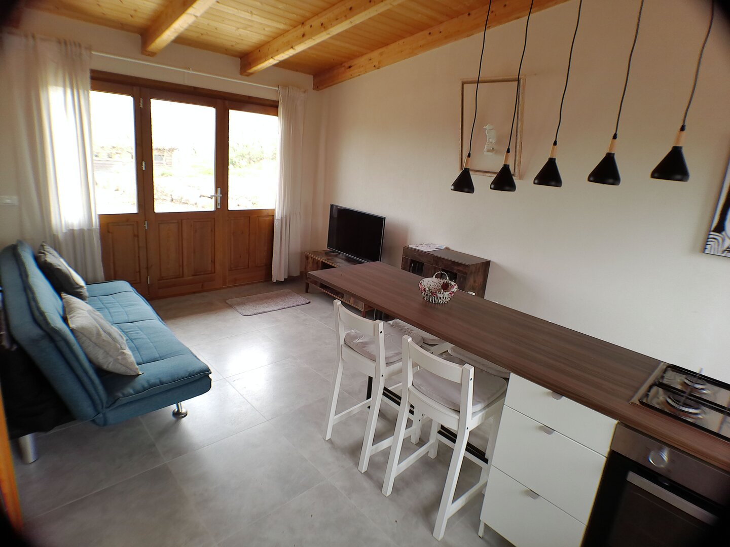 Ein Haus als Einzelhaus ideal für Paare oder kleine Familien: 1 Schlafzimmer (Doppelbett) + Schlafsofa im Wohnbereich, 1 Bad mit ebenerdiger Dusche, Wohn-/Essbereich mit Küchenzeile, private Terrasse, Parkplatz.