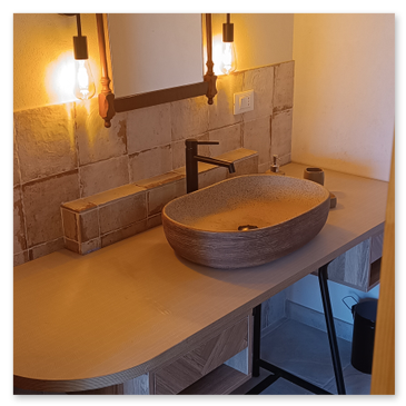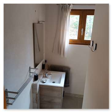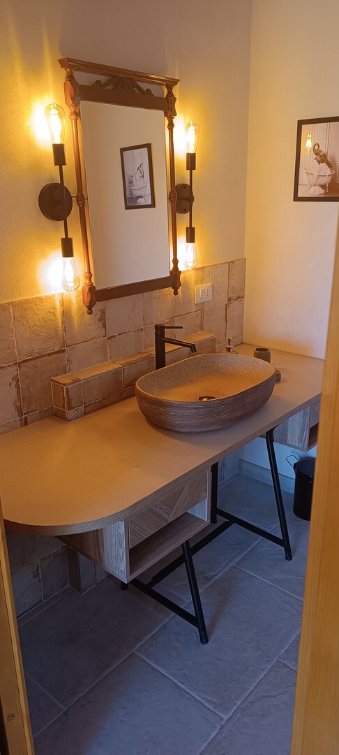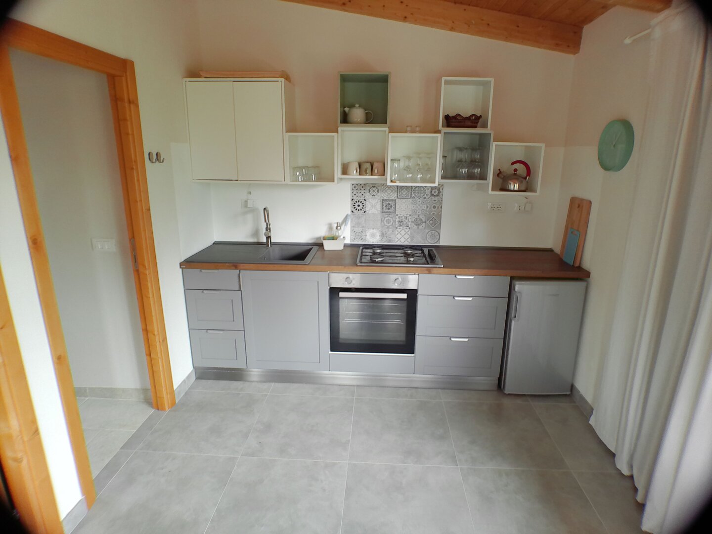 - Küche: 2-Flammen-Kochfeld, Kühlschrank mit Gefrierfach, Wasserkocher, Mokka, Töpfe, Pfannen, Geschirr, Grundgewürze